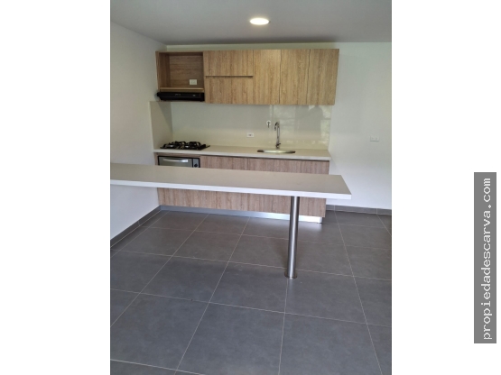Cuenta con 71mts distribuidos en sala, balcon, baño social, cocina integral abierta, habitacion auxiliar con closet, habitacion principal con baño y vestier, parqueadero cubierto y cuarto util.