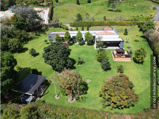 Vendo casa campestre en el Retiro en unidad cerrada 1 Nivel Area de lote 4.020 metros cuadrados Área construida 333 m² 3 alcobas, la principal con baño, Vestier y salida a la zona verde, las alcobas auxiliares con baño las dos, una con vestier y la otra con clóset Baño social Estudio Cuarto de herramientas Alcoba de servicio Baño social 2 Cuartos útiles 2 Parqueaderos cubiertos Casa domotizadaTurco Jacuzzi Kiosco con zona BBQ Administración: $500,000 Predial: $6,000,000 al año