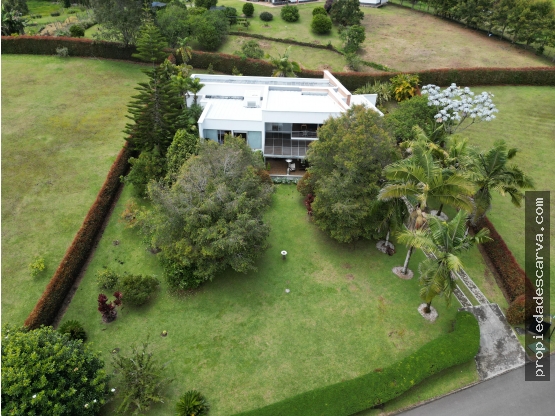 Venta de casa Campestre Llanogrande, área de lote 2.100 m2, área construida 404 m2, distribuidos en 3 alcobas, todas con baño y balcón, alcoba principal con vestier y sala, alcobas auxiliares con closet, oficina con terraza, baño social, alcoba de servicio con baño, closet de linos, sala con chimenea, comedor, cocina integral abierta, terraza con sala y comedor exterior, zona de ropas, parqueadero para 2 vehículos cubiertos y 6 descubiertos, cuarto útil.