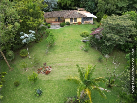 Venta de casa campestre en el Carmen de Viboral, Vereda la Aguas Claras, área de lote 6.400 m2, área construida 200 m2, distribuidos en 3 alcobas la principal con baño y vestier, baño alcobas auxiliares, corredores en la casa, estudio independiente, sala con chimenea, comedor, cocina integral, despensa, zona de ropas, terraza, parqueadero para 2 vehículos cubiertos y 10 descubierto, cuarto útil, cuarto de herramientas, lago, amplia zona verde privada con árboles brutales como, mandarino, naranja, aguacate etc.